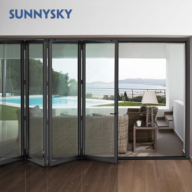 Exterior aluminum folding door system house courtyard double glazing aluminum glass bi-folding door powder coating