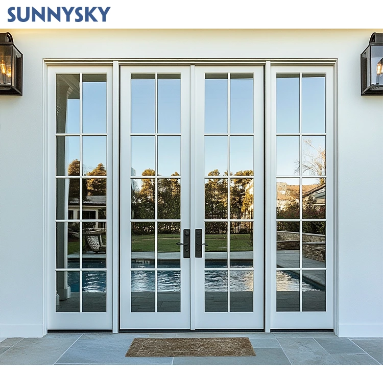 Sunnysky aluminum alloy french door Product type: commercial space / apartment / Villa Frame material: aluminum alloy / aluminum profile Size and size: Custom Function: waterproof, ventilation...
