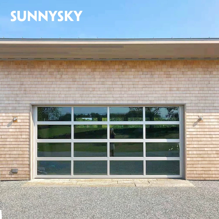 Automatic black aluminum frosted glass sectional residential garage door