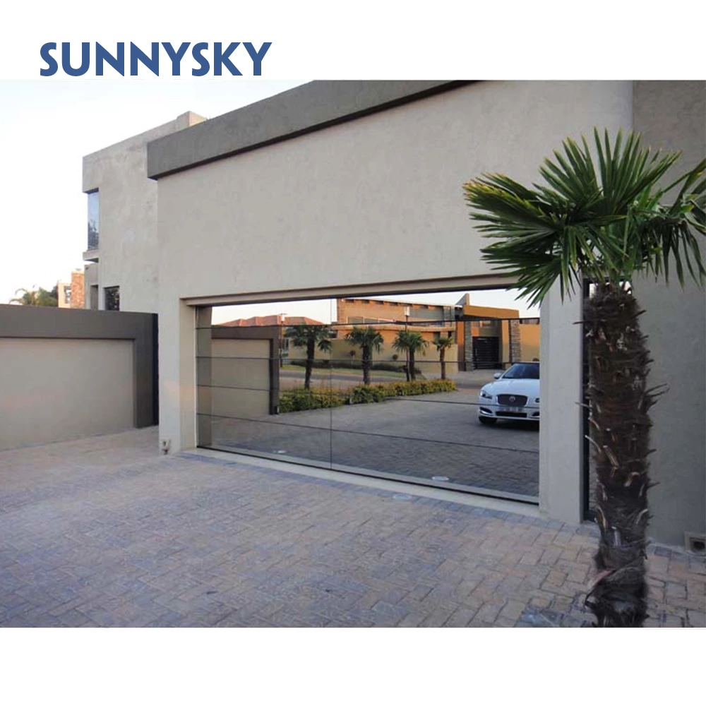 Automatic black aluminum frosted glass sectional residential garage door,Customized black glass panel aluminum frame insulated clear glass garage door,glass garag door price,all glass garage door for sale,