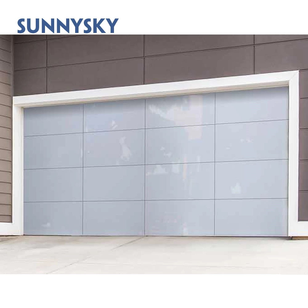 Automatic black aluminum frosted glass sectional residential garage door,Customized black glass panel aluminum frame insulated clear glass garage door,glass garag door price,all glass garage door for sale,