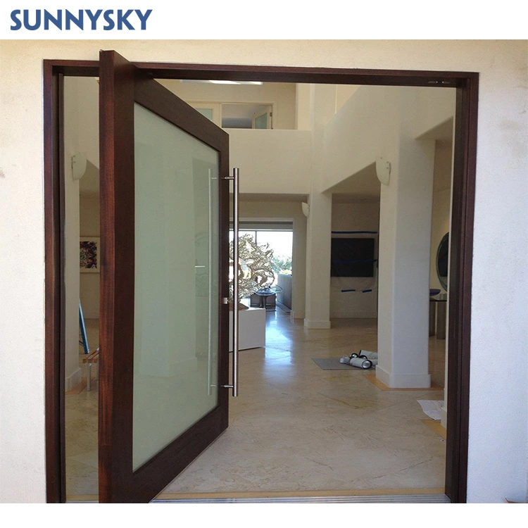 Sunnysky Black Aluminum Glass Pivot Entry Door Modern Automatic Aluminum Pivot Door for Home Entry