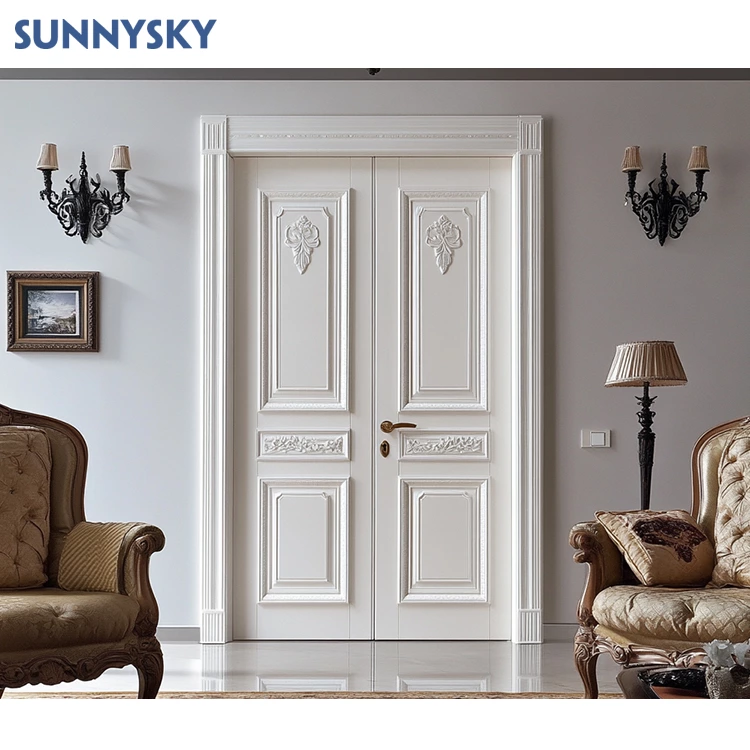 Sunnysky Customized Modern Style Solid Wood Slab Door Water-Resistant for Bathroom Single Wood Door for House Finished Simple Style