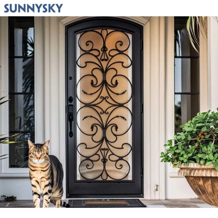 European Security Home Arched Single Double Main Entrance Front Entry Wrought Iron Door Price